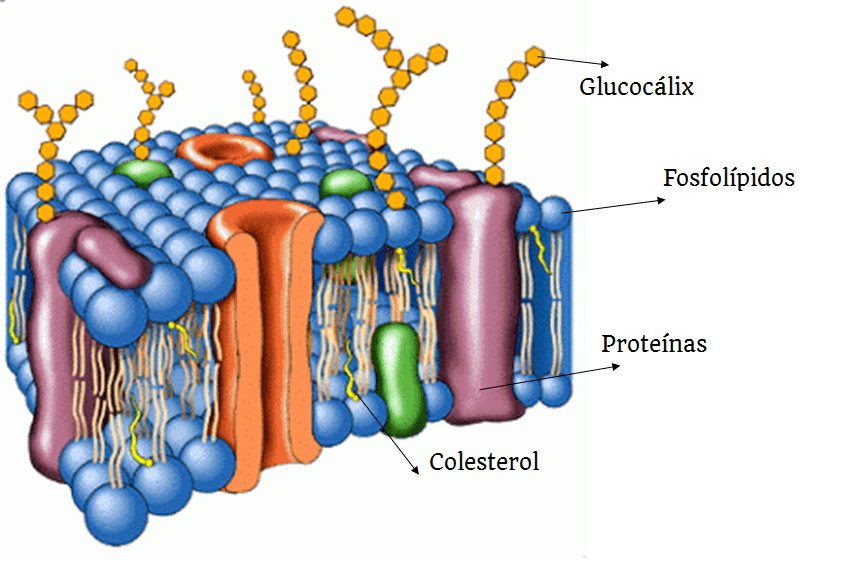 MEMBRANA PLASMÁTICA: Está Constituida por una bicapa lipídica, la cual contiene proteínas integrales de membrana y proteínas periféricas. su función es envolver la célula y mantener su integridad funcional y estructural. (Gartner, Hiatt, Palacios Martínez, 2015, pág 12).
